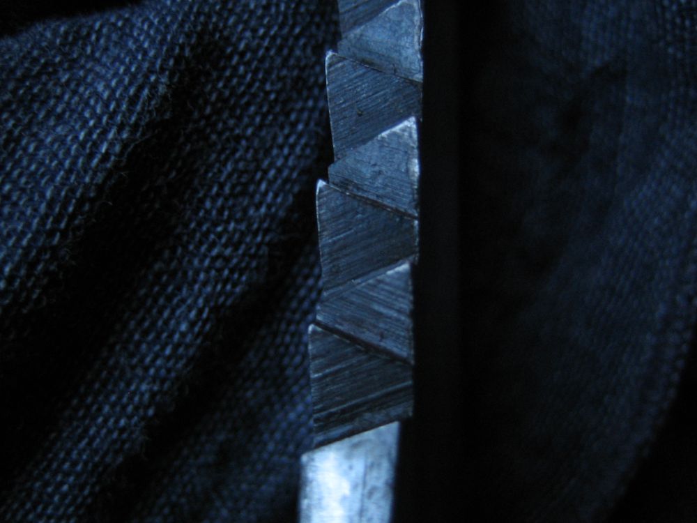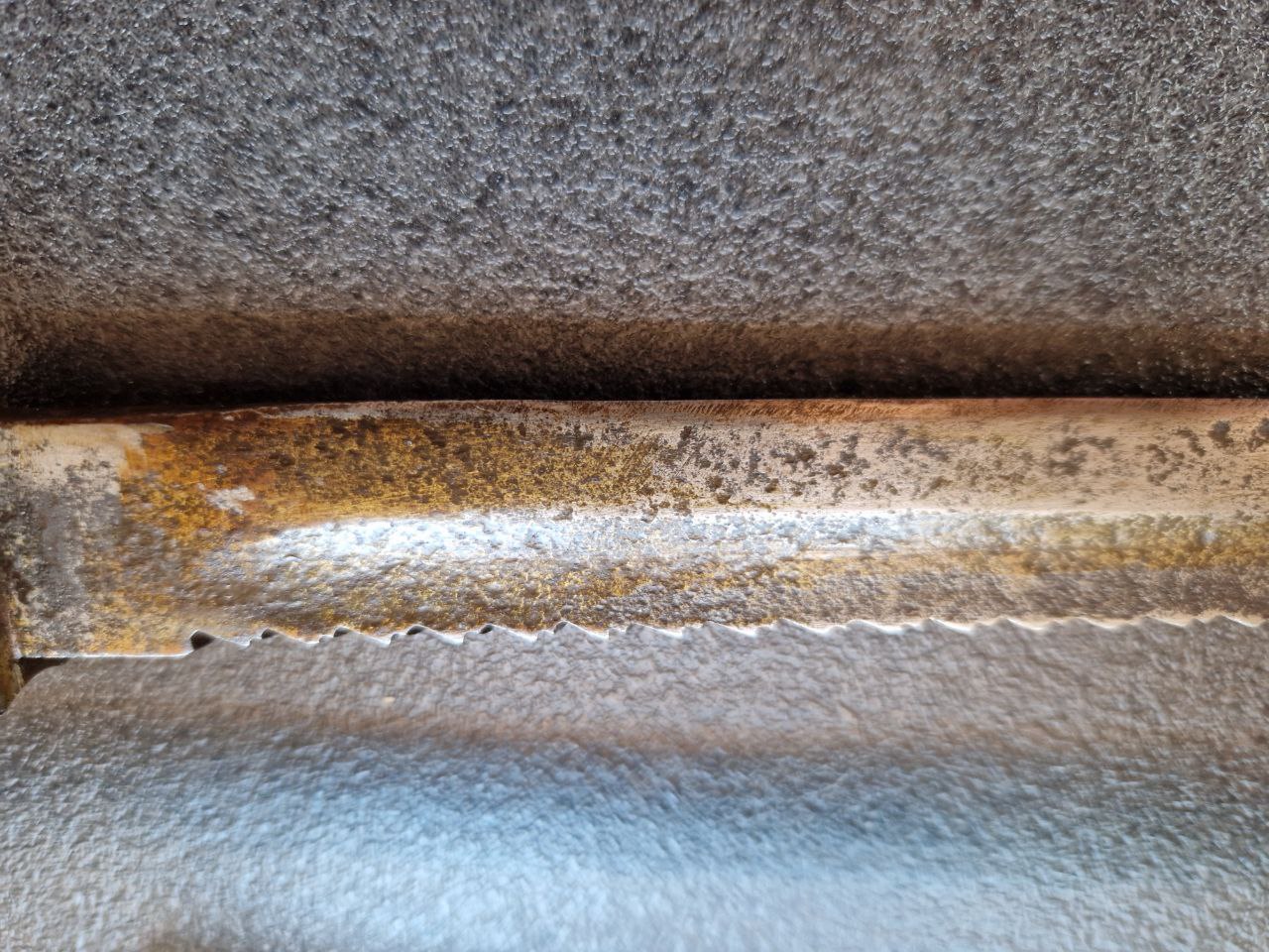Bild 1: Hier erkennt man meiner Meinung nach gut dunkle Stellen und helle Stellen mit Rillen - also wurde die Säge zumindest wohl mal "nachgeschliffen".