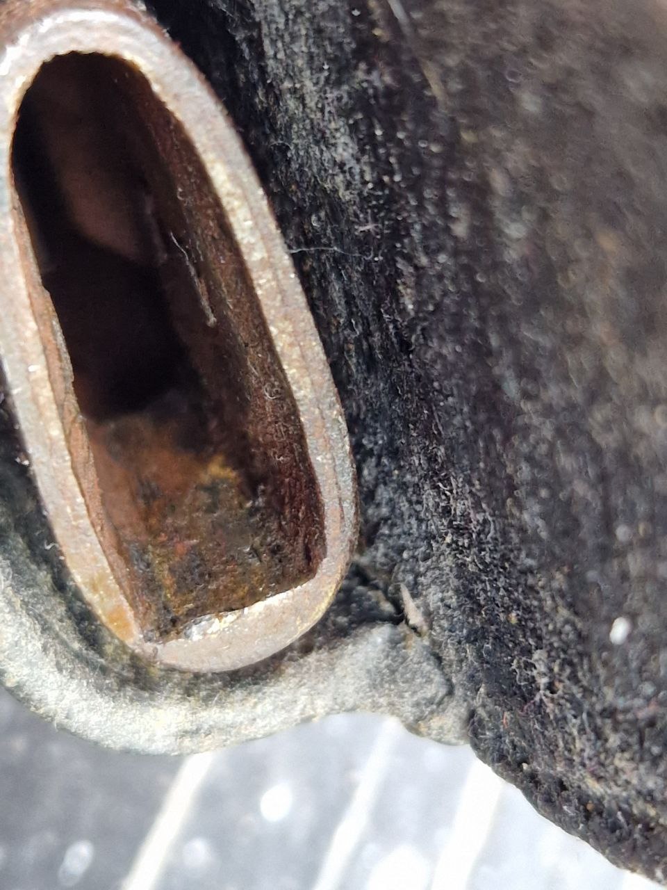 Zunächst sind keinerlei Stempel mehr erkennbar - nur Rost, Rost und Rost.