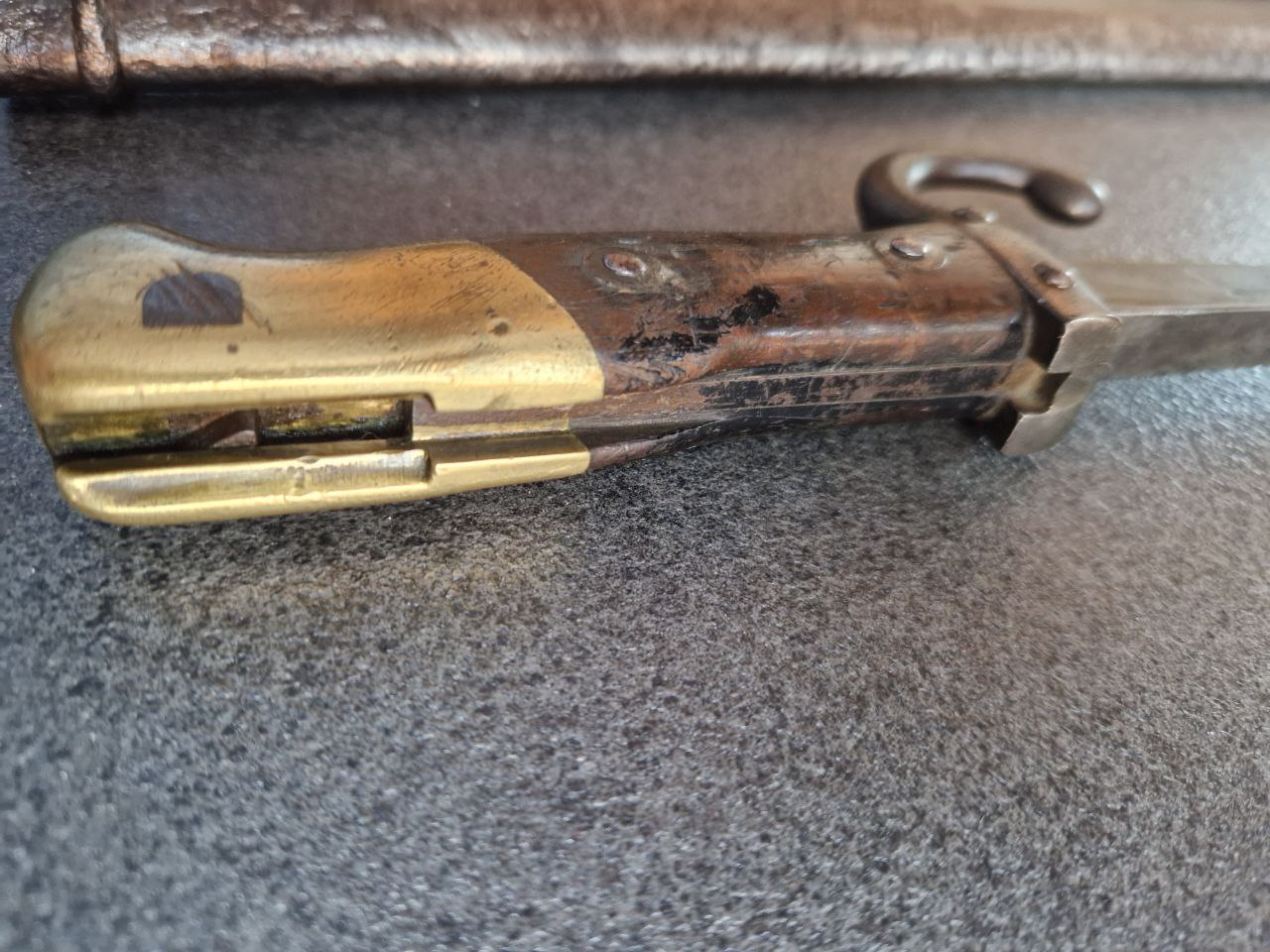 Vielen Dank für die Antwort: Das finde ich auch bemerkenswert, dass der Drücker abgefräst und wahrscheinlich auch mit Absicht unbeweglich gemacht wurde. Aber so eine "Umwidmung" hat man mit verschiedenen Variationen zum Beispiel auch am Chassepot-Seitengewehr ebenfalls vorgenommen.
