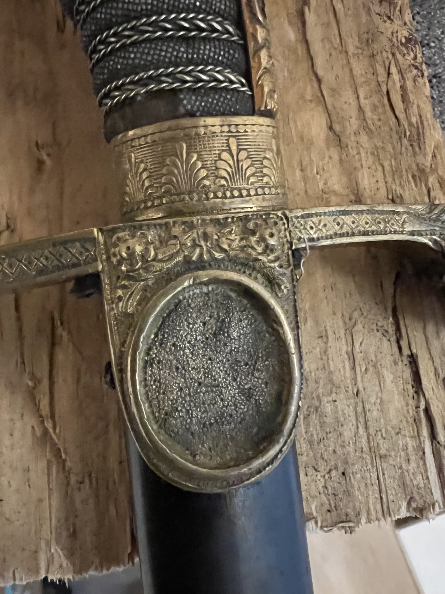 Eine eindeutige Zuordnung nach Deutschland ergibt sich nicht aus den Bildern. Ob die Augenfarbe ein Hinweis auf die Waffengattung ist, bleibt fraglich. Denn dazu hätte sicherlich auch ein Hinweis (Emblem etc.)auf dem äußeren Parierstangenlappen gehört.
