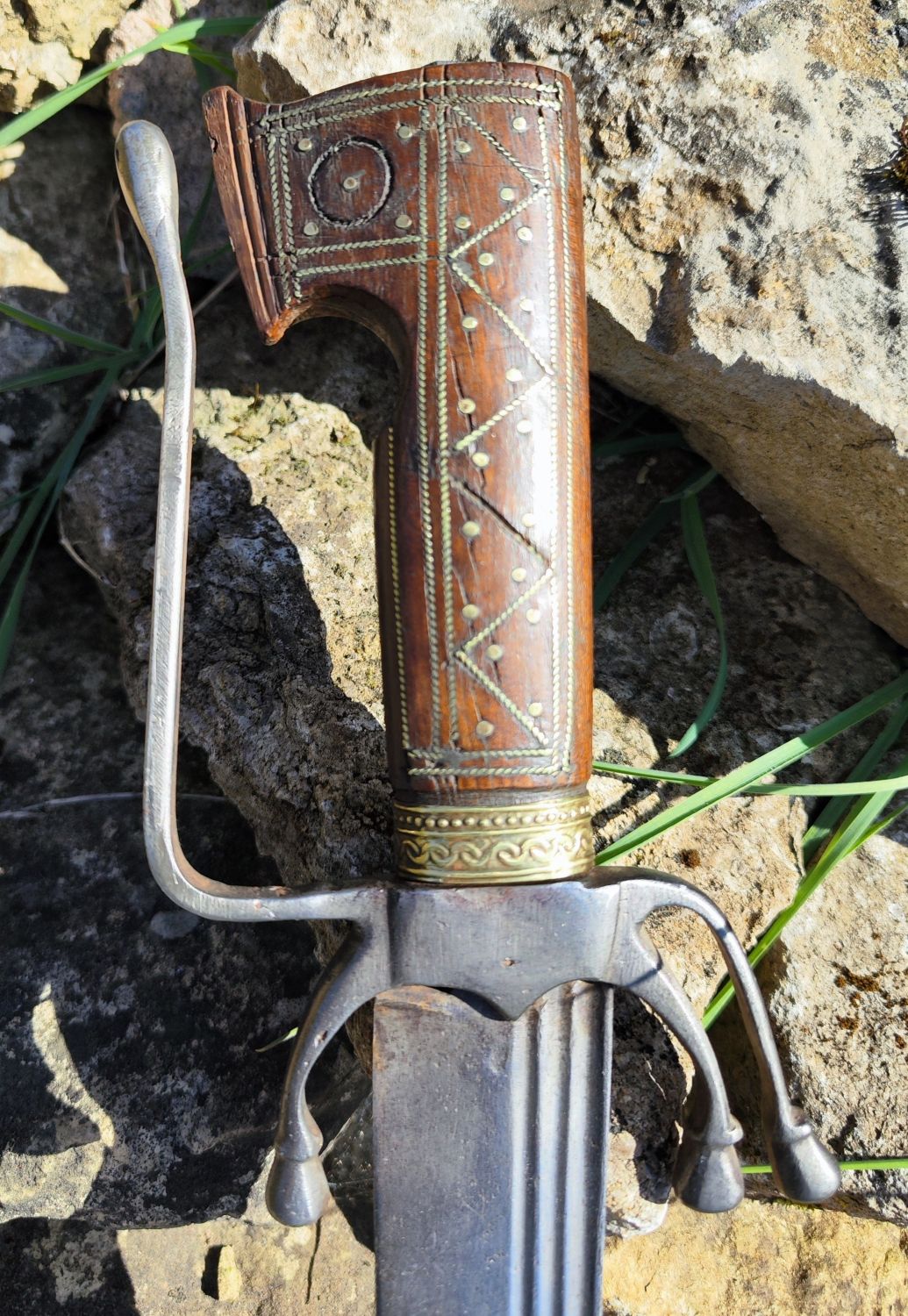 Ein Nimcha mit europäischer (evtl französisch) Klinge aus dem 18. Jahrhundert. Griff in Holz mit Messingeinlage, Scheide aus Messingblech mit Holzkern.