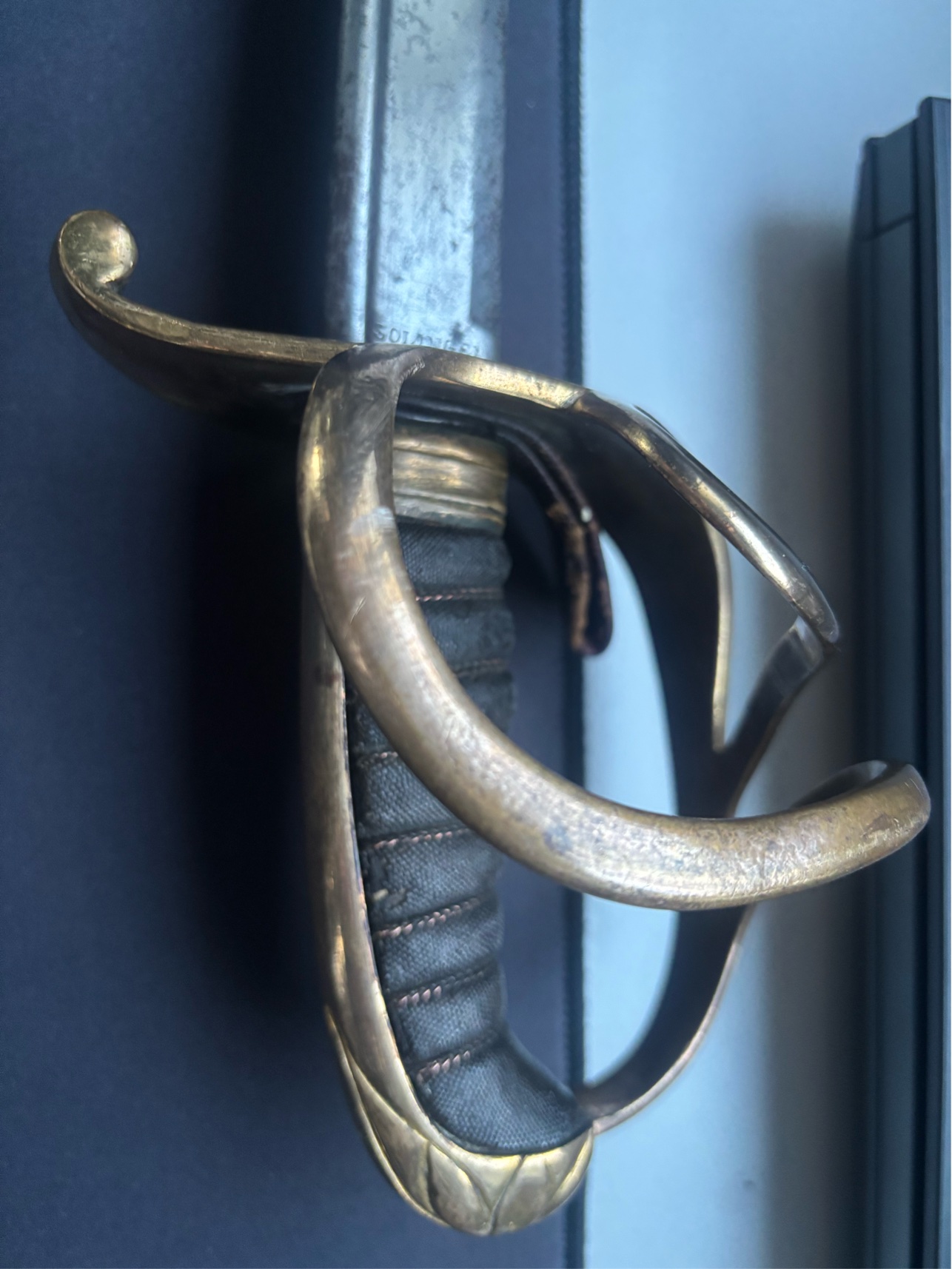 M.E. ist das kein preußischer Säbel für berittene Infanterieoffiziere. Das Gefäß scheint mir auf den Fotos aus Messing, oder täuscht das?