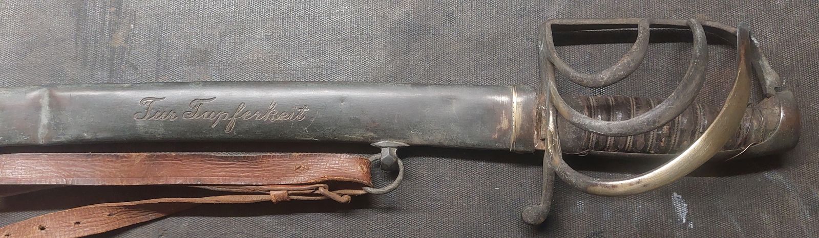 Ich kann zwar feststellen, dass der Säbel für Tapferkeit während der Ereignisse 1848 im Rahmen der Bürgerwehr von Benneckenbeck bei Magdeburg verliehen wurde. Was ich nicht feststellen kann: Was ist das für ein Modell? Ich vermute, dass es aus Hessen-Kassel kommen könnte, bin aber nicht sicher. Sicherlich weiß hier jemand Genaueres.