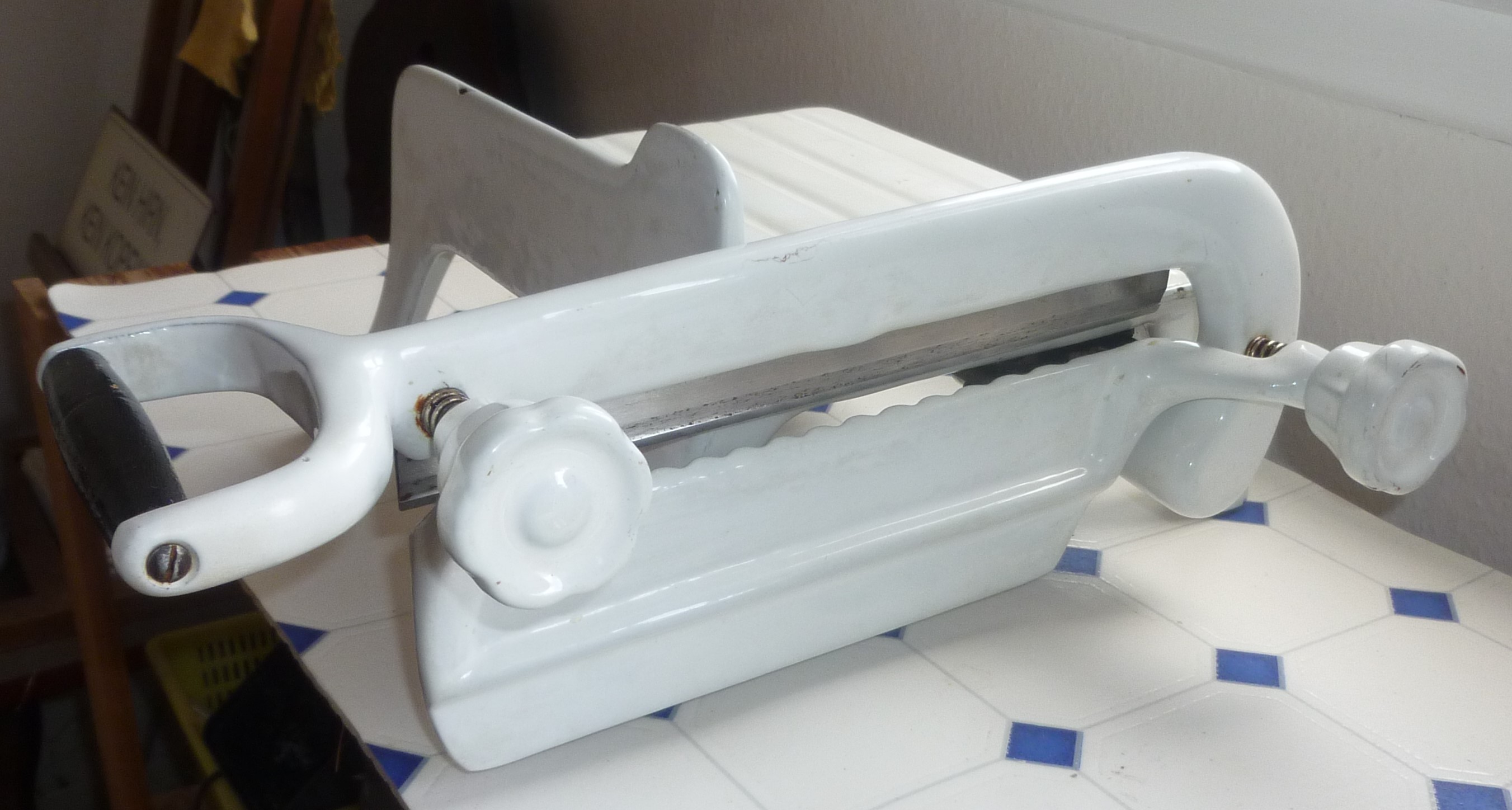 "Wer suchet, der findet", sagt man. Manchmal findet man aber auch ohne zu suchen! Ihr denkt, ich schneide auf? Nein, könnte ich aber, denn hier stelle ich einen Wurst-/Käseaufschneider vor. Und zwar einen der Firma "Rewebo" (Rheinische Werkzeug- und Metallwarenfabrik GmbH & Co. Rewebo KG, Bonn), die wohl von den dreißiger Jahren des letzten Jahrhunderts bis zum Jahr 2007 existierte.