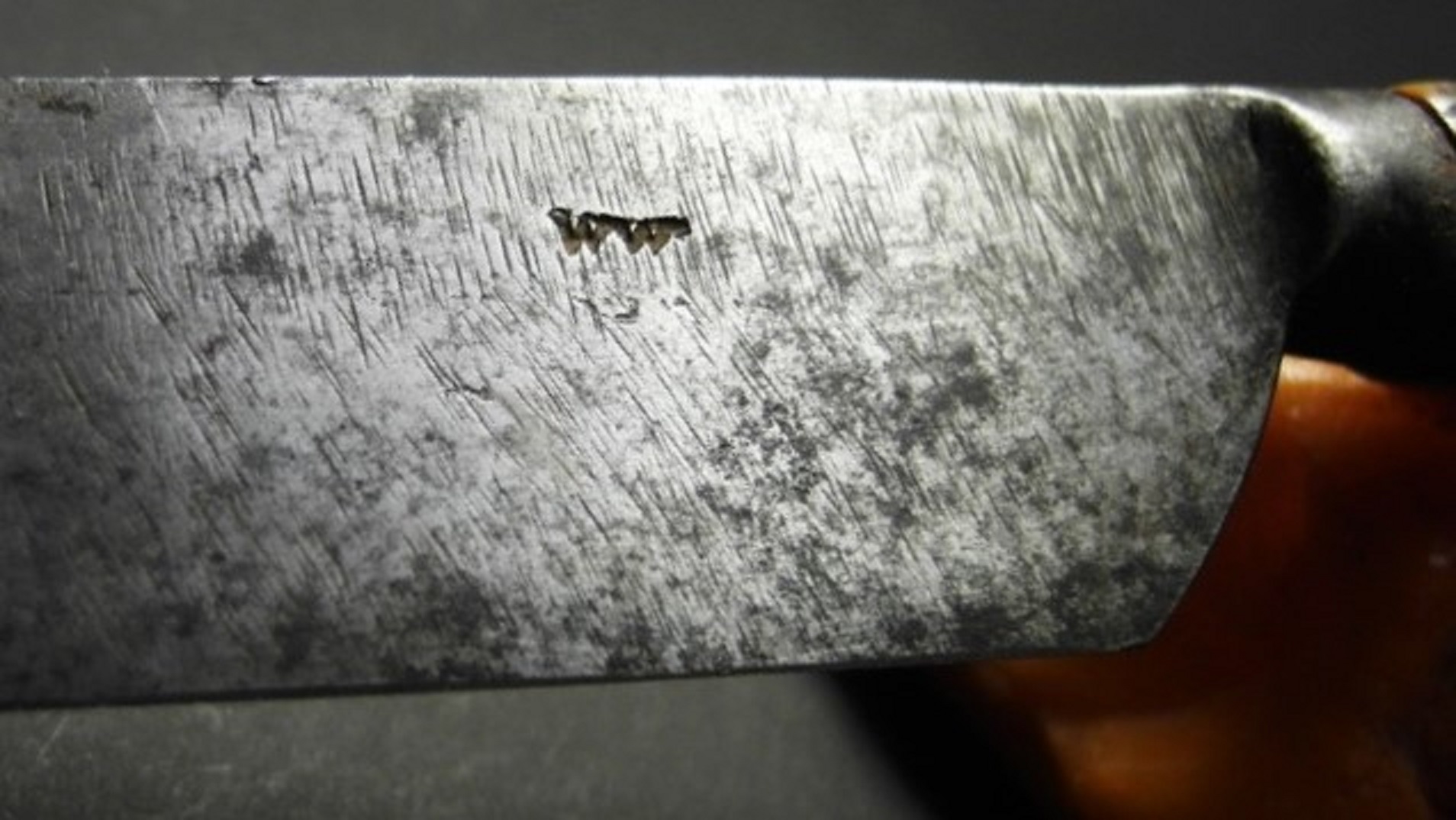Schmiedemarke auf einem Gürtelmesser mit Hirschhorn-Griff