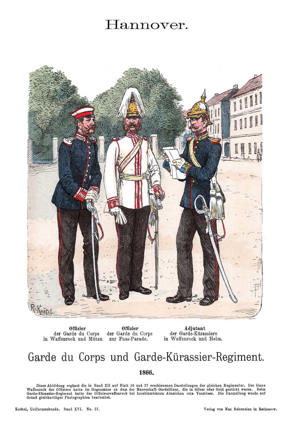 Nach der Zusammenlegung der in Hannover aufgestellten Truppen inkl. der Einheiten der King's German Legion von 1816 und 1817 gab es in Hannover bis 1829 keine Garde du Corps.