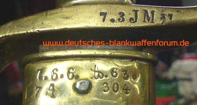 ich nehme an, der obere Stempel auf der Scheide ist analog zu den schleswig-holsteinischen zu lesen: