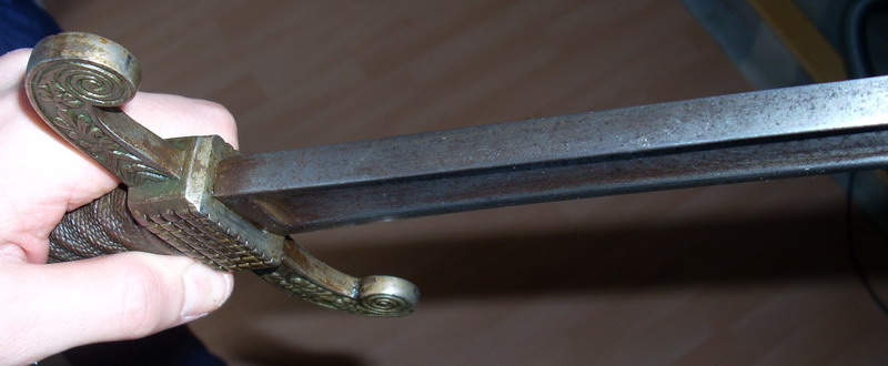 ich habe noch ein Paar Fotos gemacht, und wie man sieht war der Griff anscheinend mal an einem "Schwert" oder war für eines.. Er wackelt leicht, läßt sich aber nicht entfernen! Hersteller konnte ich keinen finden.. nirgends! kann nur sein das er sehr schlecht Gestempelt war und mal weggeschliffen wurde?
