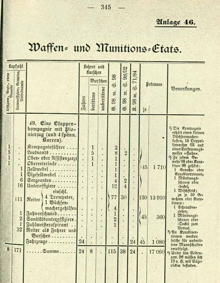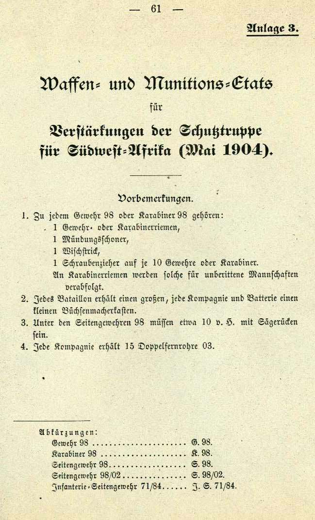 Waffen und Munitions-Etat Kaiserliche Schutztruppe DSW 1904