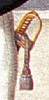 Tragehaken und Messingdrahtbefestigung der Scheidenbeschläge fehlen, Löcher Beschlag und Scheide jedoch deckungsgleich. Scheidenbeschläge mit mehreren umlaufenden Schmuckstreifen (siehe Fotos). Stempelung der Scheide nur mit Brandstempel auf dem Leder.