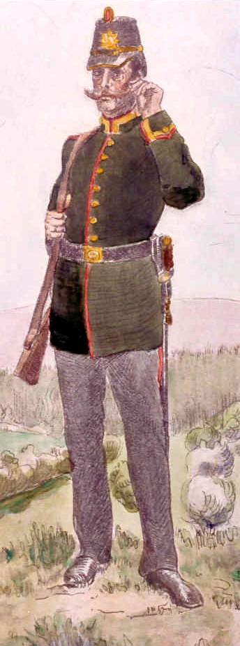 1842 erhielt die Schutzwache statt der Säbel (Briquet?) zu den französischen Voltigeur-Gewehren Hirschfänger. Das genaue Aussehen dieses Hirschfängers ist nicht eindeutig belegt.