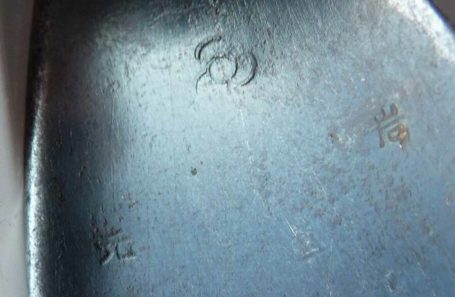 Herstellungsdatum auf dem Griffbügel von rechts nach links 大 五.一 Tai go . ichi ( Taisho 5. Jahr 1. Monat ) = 1916