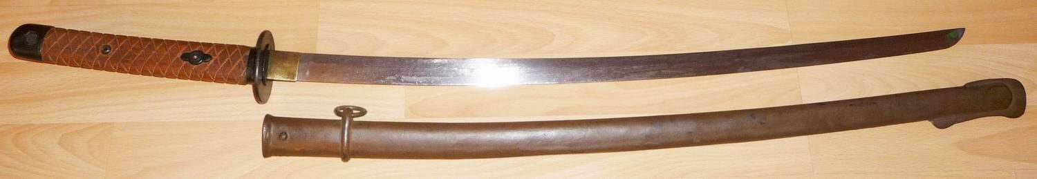 Die Klinge ist mit einem unkenntlichen Arsenalstempel (wahrscheinlich Nagoya) und einer Nummer (210128) versehen. Die gleiche Nummer befindet sich auf dem Mundblech der Scheide.