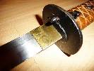 Gunto (Schwert) und Saya (Scheide) sind im verwahrten Zustand mit einer, seitlich am Griff befindlichen, federgelagerten, Klinke verbunden.