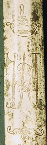 In meinem Fotoarchiv befindet sich eine unbekannte Blankwaffe, deren Zuordnung sich bis heute wegen des bisher nicht aufzulösenden Klingenmonogramms einer Identifizierung entzogen hat. Zur Verdeutlichung habe ich eine Zeichnung des Klingenmonogramms beigefügt. Vielleicht ist ja einer der hier Lesenden mit der entsprechenden Kenntnis gesegnet.