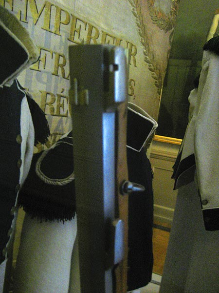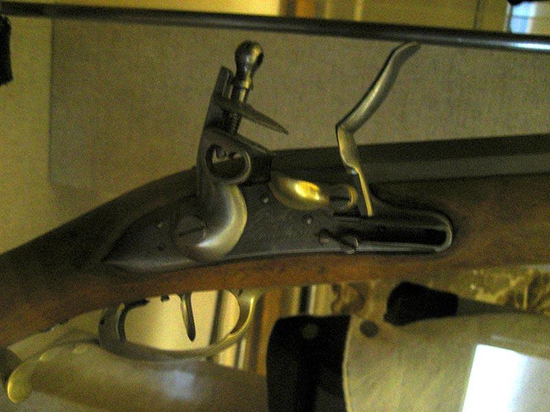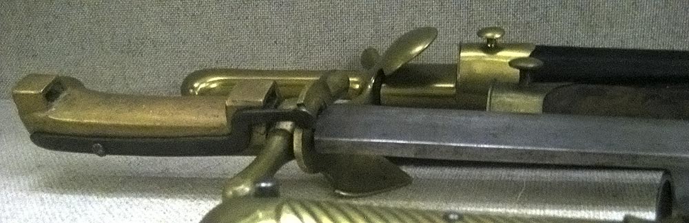 Hier drei Hessen-Kasseler Jäger-Büchsen mit Doppelhaken-Aufpflanzung, ebenfalls gesehen im Museum Schloss Friedrichstein.