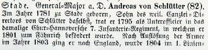 Andreas von Schlütter ist von 1835 bis 1859 Capitain der hann. Elbzoll-Fregatte gewesen. Alle Daten seines Lebenslaufes enthält das Hof- und Staats-Handbuch auf das Jahr 1863, Anhang Seite VIII/IX. [