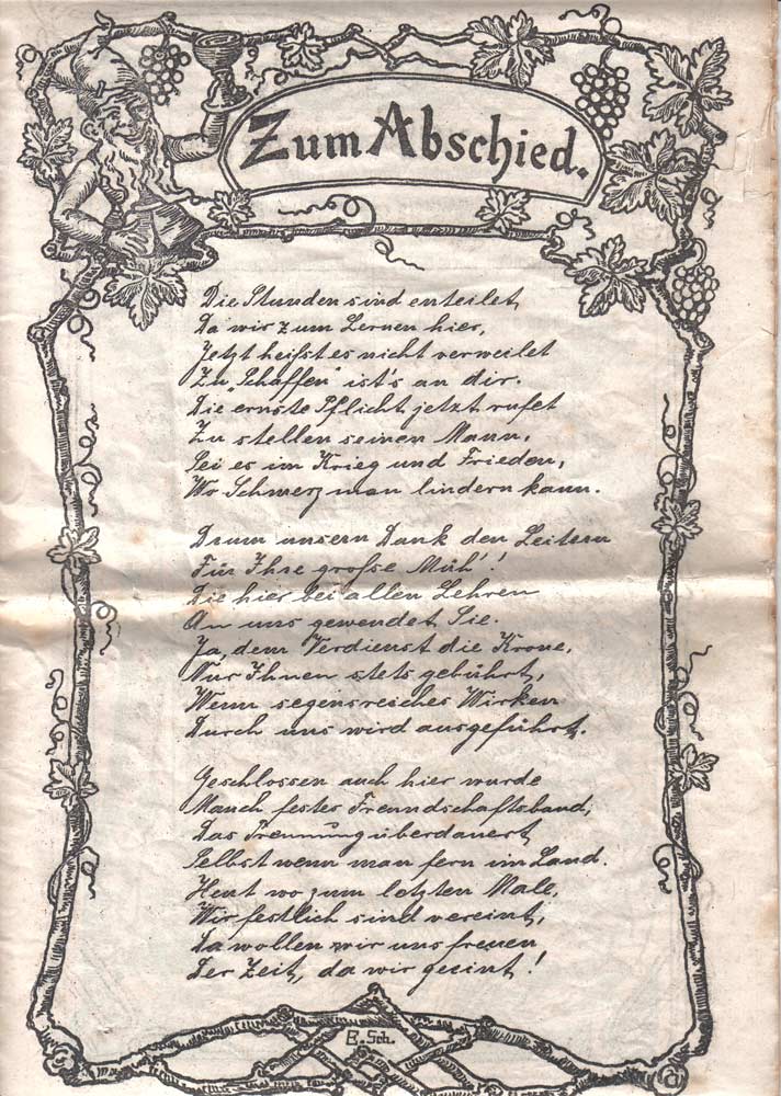 Fest-Zeitung zur Abschiedsfeier der Sanitätsschüler der 22. Div.