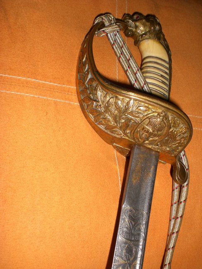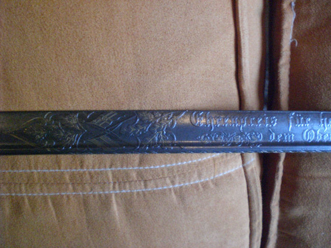 Diesen Marinesäbel des o. g. Offiziers, möchte ich dem Forum zur Ansicht vorstellen. Ich habe diesen Säbel vor ca. 15 Jahren auf einem kleinen Antikmarkt bei Hannover erworben. Hersteller, Weyerersberg & Kirschbaum, Solingen. Das Gefäß mit Elfenbeingriff ist vergoldet. Echte Damastklinge mit Schör und restvergoldeter, maritimer Ornamentik. Gesamtl. 97 cm. Klingenl. 82.5 cm. Klingenbr. 2.5 cm. Es handelt sich hierbei, um den ersten, für einen Offizier der Ostseestation in Kiel verliehen Schießpreisäbel.( 1903 ). Der Oberl. Karl Friedrich Grumme wurde am 25.11.1976 geboren. Am 09.01.1900