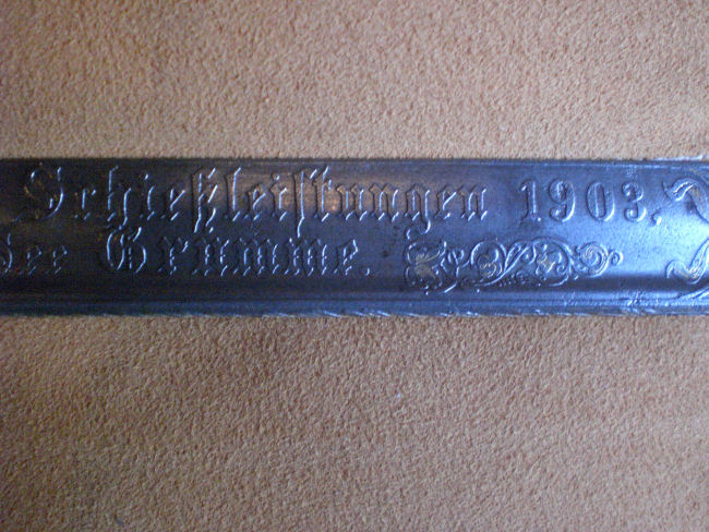 " Ehrenpreis für hervorragende Schießleistungen 1903, für den Oberleutnant zur See Grumme " .