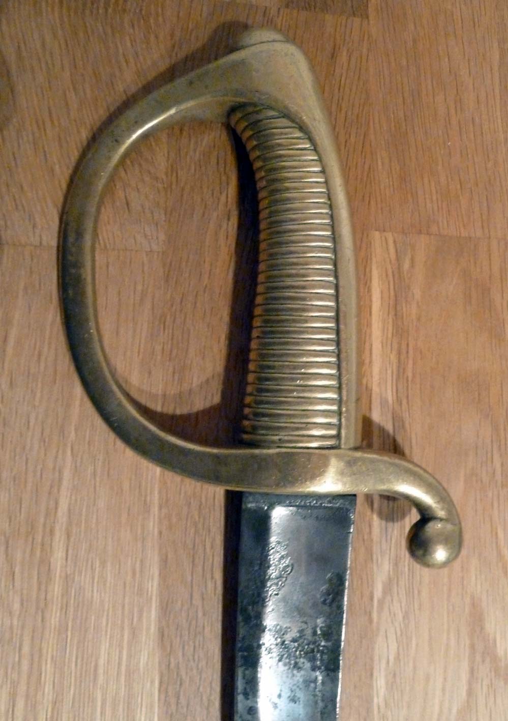 Hier ein anderer Säbel ohne Truppenstempel.Vermutlich blieb er im Depot.Die Quartseite der Parierstange ist alledings leicht flach geschliffen.(vorbereitet zum Stempeln od.alter Stempel entfernt,was ich aber nicht glaube).Die Teile mit Truppenstempel haben meist auch diese Schliffspuren.