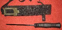 Diamant Nachschärfplatte auf der Scheide unter dem mittleren Haltegurt.