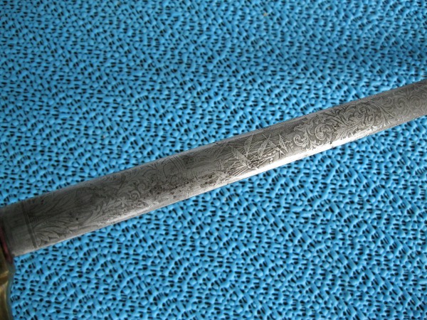 Ich besitze noch ein zweites, identisches Stück mit den gleichen Maßen. Auch hier weist die Klinge ein Ätzdekor mit unklarem Anker aber ohne Kaiserkrone auf.