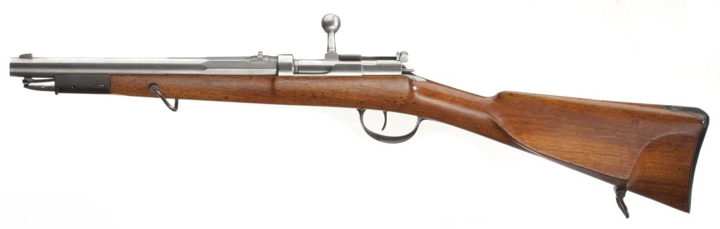 Artillerie-Versuchskarabiner mit Pike Zylinderverschluss System Dreyse mit einfacher Verriegelung (Länge 141 mm); einfaches Standvisier ohne Klappen; Eisenkorn fest auf dem Lauf; alle Metallteile außer Verschlusszylinder gebräunt; Lauf/Schaftverbindung durch Kreuzschraube und Schieber durch das Vorderband; einschiebbare Pike mit Verriegelungsfeder unten am Vorderschaft, Kolbenfach mit Holzschuber.
