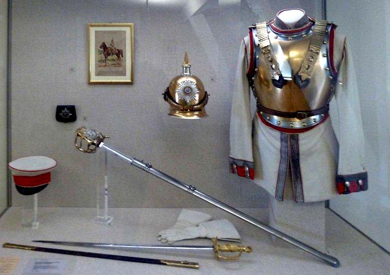 Helm, Kürass und Koller für Offiziere der Garde du Corps aus der Nähe, gesehen im