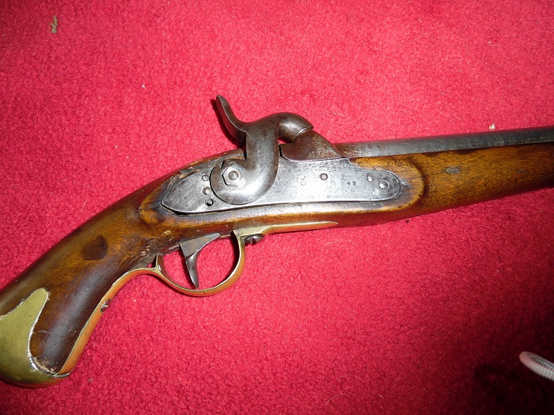 Hallo und einen schönen guten Tag...ich besitze seit kurzem diese schwedische Pistole , mit gezogenem Lauf und vollständigem erhaltenem Thouvenin Dorn. Die Waffe ist anscheinend nummerngleich mit der Nummer 47. Die Hahnschraube ist sicherlich nicht original und leider fehlt auch die Hanhsicherung. Der Studel im Schloß ist leider wohl schon vor längerer Zeit gebrochen, ebenso eine Halteschraube des Schloßes. Das Piston ist nicht mehr so schön. Kann mir jemand hier bei der Bestimmung der Waffe helfen. Innen auf der Schloßplatte steht unter anderem 1834, unter dem Lauf 1859. Interesanterweise steht unter dem Messingbeschlag des Knaufkolbens im Holz die Nummer 48, was wohl eher auf die glattläufige