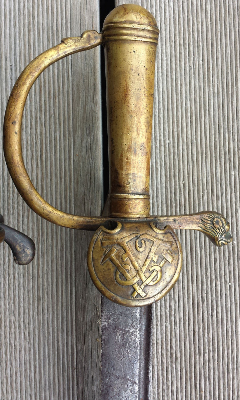 Der vergleichbare preußische Mineursäbel trägt auf dem Stichblatt auch nur das unbekronte Fr-Chiffre mit Hammer und Schlägel.