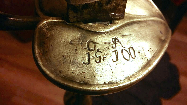 Die Gravur daruter lese ich 1 G 100, was als erste-Grenadier-Compagnie, Sabel-Nr. 100 interpretiert werden könnte.