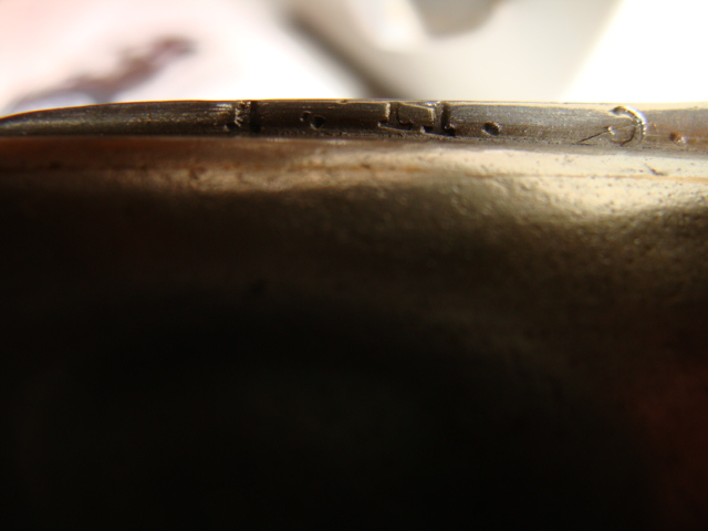 Beim Betrachten des ergänzten Griffstücks / der Belederung stellt sich natürlich die Frage nach der originalen Zusammengehörigkeit der Teile.