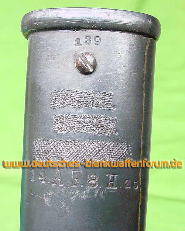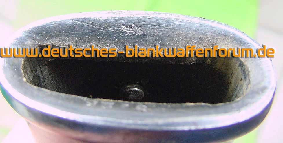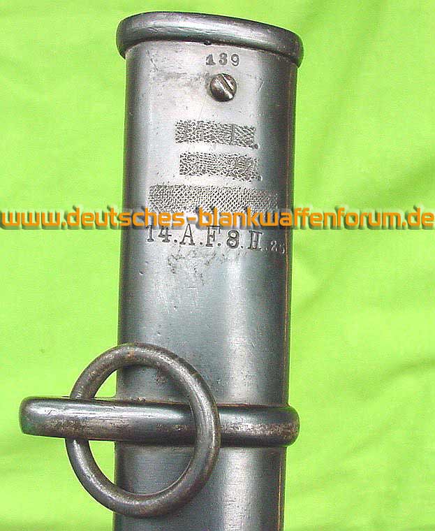 Die Scheide des Kavallerie-Säbels (K.S.) M/1852. Deutlich sichtbar das Mundblech für die 1879er Steckrückenklinge.