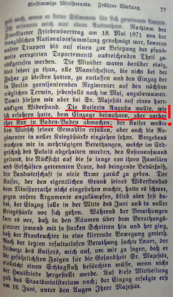 Wenn wir Bismarck glauben dürfen, lag das an der Gemahlin Kaiser Wilhelms, Augusta...