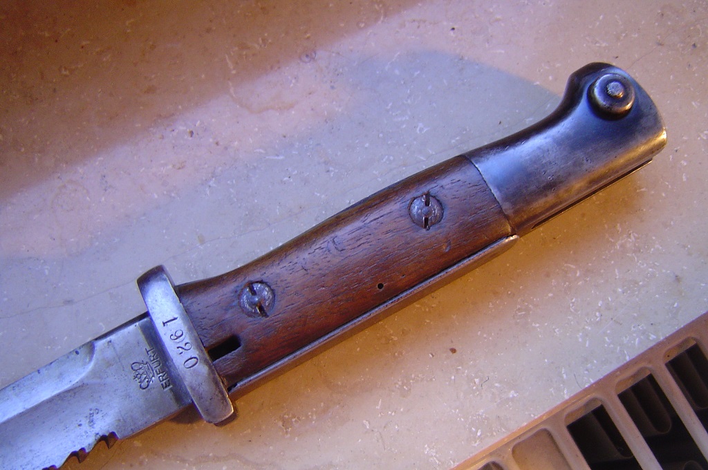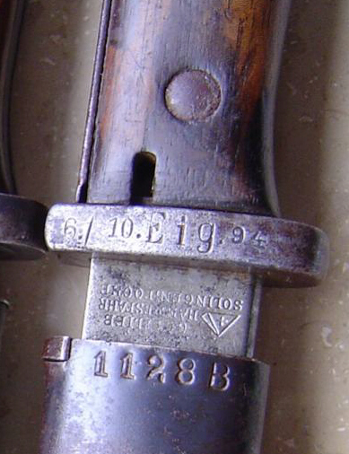 Die Abnahme am Klingenrücken scheint ausgeschliffen. Der Truppenstempel ungewohnt,