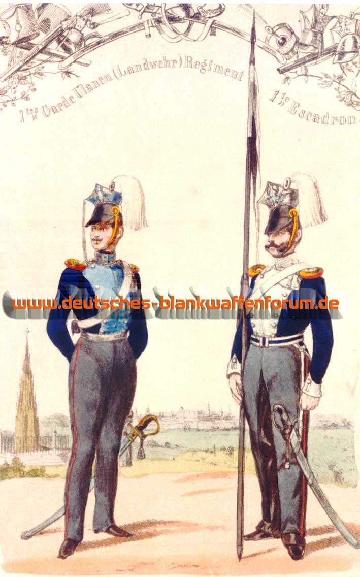 Landwehr-Ulan (aufgesessen) des Landwehr-Ulanen-Regiments Nr. 6 in der bis 1857 vorschriftsmäßigen Uniform