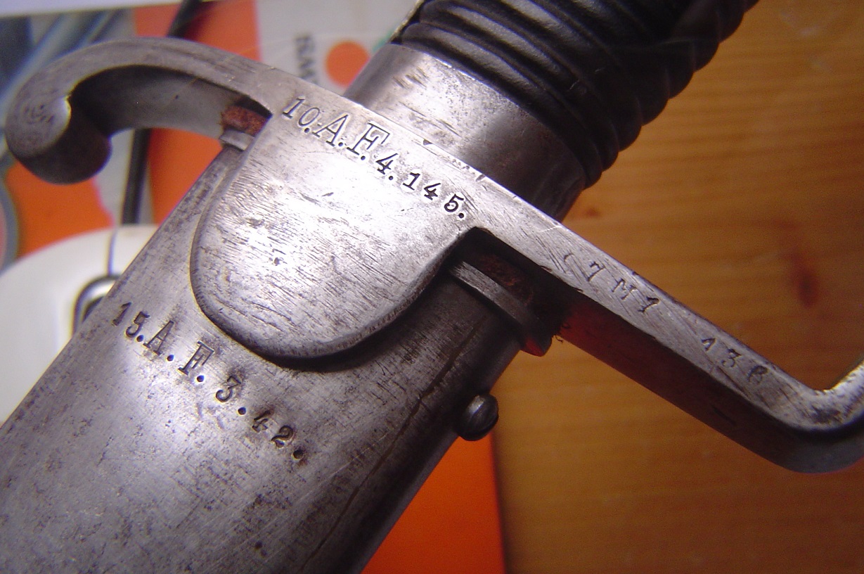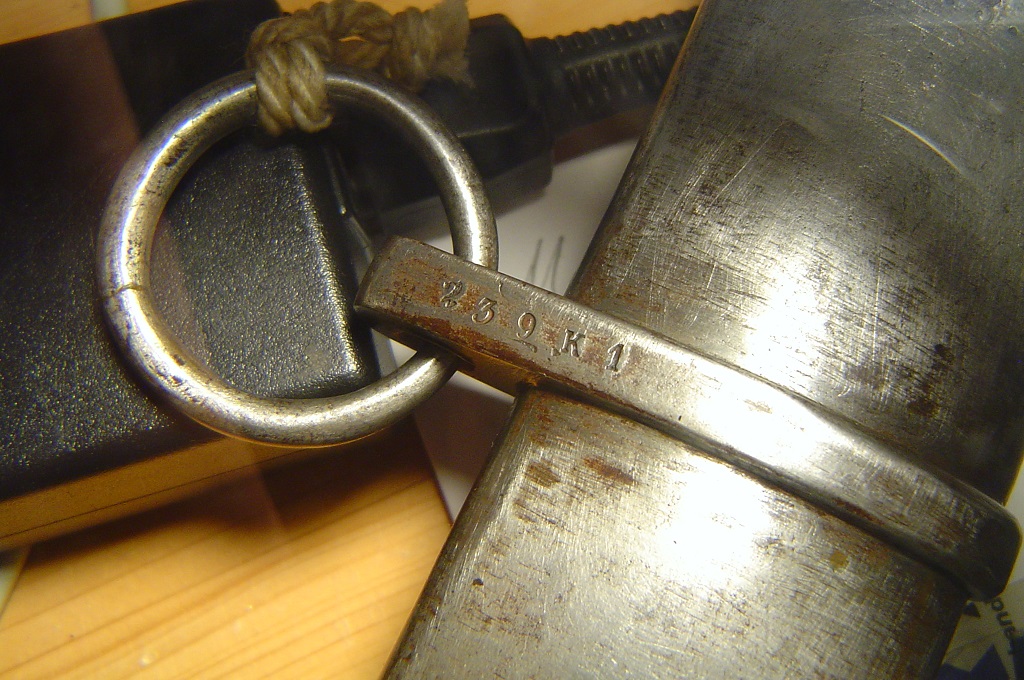 Hab mir letztens diesen Säbel gekauft, unsachgemäß gereinigt und die Klinge etwas geschärft, nicht nummerngleich und mit spätem Truppenstempel! Depotstempel auf der Scheide K Königsberg, am Säbel M Minden. Das Stück wird wohl irgendwann, wie so viele Blücher, eine neue Klinge bekommen haben diese ist ca 84 cm Lang und am Ansatz 3,9 cm breit, trägt keinen Hersteller, am Schlepper ist S&K (Schnitzler u. Kirschbaum, Solingen)geschlagen. Auf dem Griffbügel unten erkennt man noch Nummern, evt Reste eines alten Truppenstempels!