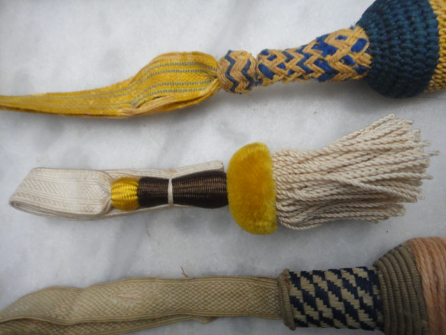 habe diese 3 stücke bekommen.seitengewehrtroddel 15.Kompanie(eigentumstück)noch orginal zusammengebunden.und diese Säbel oder Seitengewehr Portepees.ich kann diese beiden stücke nicht zuordnen,könnt ihr mir helfen?