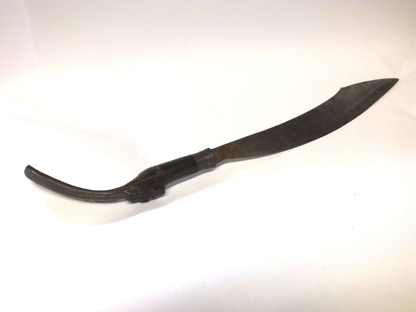Es handelt sich um eine "Pira", eine säbelähnliche Waffe aus dem 19. Jahrhundert, von den Yakan, welche auf dem Sulu-Archipel leben. Die Yakan taten sich in der Vergangenheit als Krieger, Piraten und Sklavenhändler hervor. Die Kolonialmächte Niederlande, Spanien und USA brachten diese Blankwaffen als Geschenke in die westliche Welt.