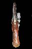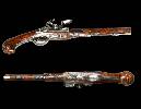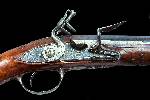 Le Lorain( auch Le Lorraine) aus der Stadt Valence war in Frankreich einer der berühmtesten Büchsenmacher des frühen achtzehnten Jahrhunderts . J. F.Haywart schreibt in seinem Buch „Die Kunst der alten Büchsenmacher“, dass er der einzige nicht in Paris ansässige Meister gewesen sei, der es in seiner Kunstfertigkeit mühelos mit der Elite der Konkurrenten in der Hauptstadt aufnehmen konnte. Von ihm stammt ein sehr hochwertiges doppelläufiges Pistolenpaar, das aus dem Besitz von Charles Bonaparte, dem Vater Napoleons. Waffen von Le Lorain erzielen auf Auktionen regelmäßig Höchstpreise. Da Valence, wo nebenbei erwähnt auch der junge Napoleon seine Ausbildung zu Artilleristen erhielt,nicht weit von der spanischen Grenze entfernt war, lag es für Le Lorain nahe, teilweise die Läufe für seine Pistolen von dort zu beziehen. Spanische Läufe genossen damals einen hervorragenden Ruf und waren deshalb sehr begehrt. So befindet sich bei der vorliegenden Pistole auf dem Lauf auch eine in Gold eingelegte Punze mit dem Wappen von Barcelona und den Initialen AN. Die sehr elegante Pistole hat eine Länge von 40 cm Die Besonderheit dieser Waffe ist der kunstvoll verschnittene, mit Silberdraht verzierte und in einem Adlerkopf als Knauf endende Nussbaumschaft. Schloss, Schlossgegenblech und Abzugbügel zeigen sehr hochwertig ausgeführte Gravuren. Der Lauf ist im hinteren Drittel achteckig und läuft dann nach vorne zu rund aus. Eine Besonderheit ist hier das goldgefütterte Zündloch. Der hölzerne Ladestock endet mit einem Elfenbeindopper. Das Kaliber beträgt etwa 13 mm. Die Schlossplatine und der Hahn haben zeittypisch eine flache, nicht gewölbte Oberfläche.