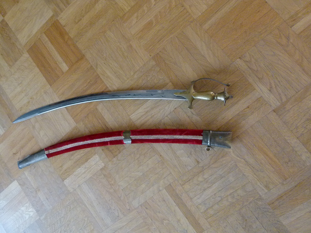 -Und zum Schluss ist auf den letzten beiden Bildern der zweiten Reihe ein indisches Tulwar zu sehen. Ich vermute, dass es sich um eine Replik handelt, da meines Wissens nach nie eine Griffkopfmutter in Form einer Sechskant-Hutmutter verwendet wurden. Die mir bekannten Tulwars haben eine einfache, ungekehlte Klinge wohingegen das deine über eine Klinge mit Hohlkehle verfügt. Zudem wirkt der allgemeine Zustand auf mich wie der einer Neufertigung.