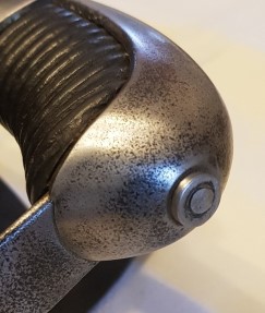 Eine Beurteilung des Alters der Verschraubung nach diesem Bildchen ist schwierig. Man hat das Gefühl, daß die Griffkappe einer größeren Korrosion ausgesetzt war als die Mutter. Und eine Edelstahlmutter im 1. Weltkrieg?