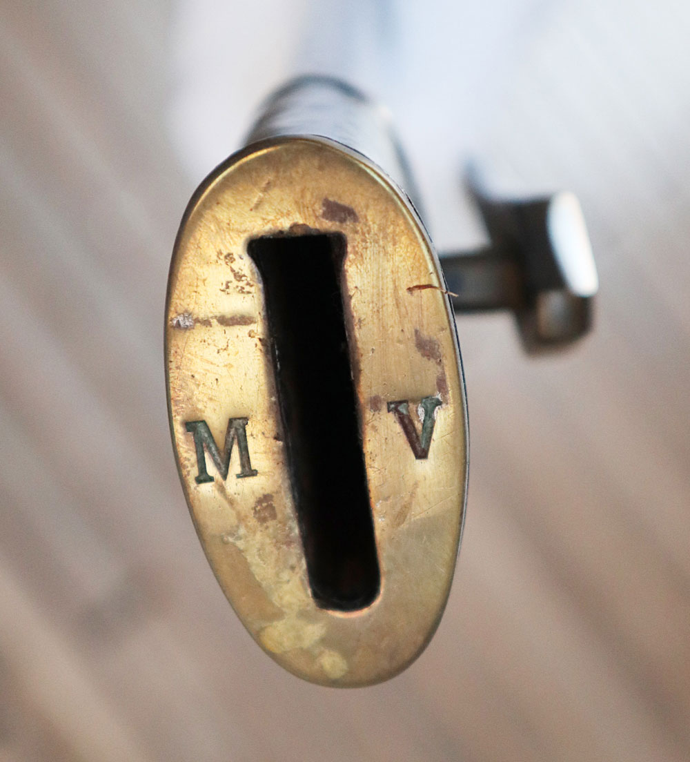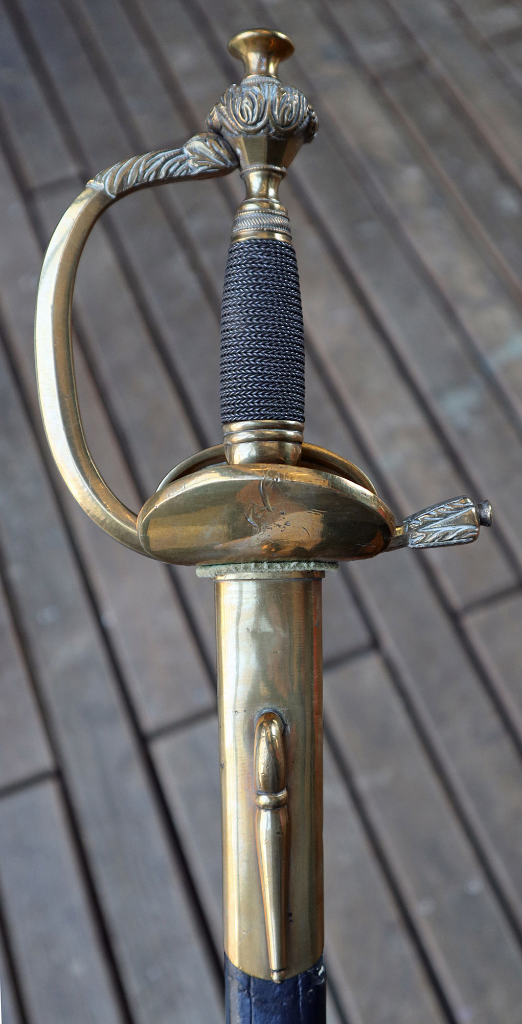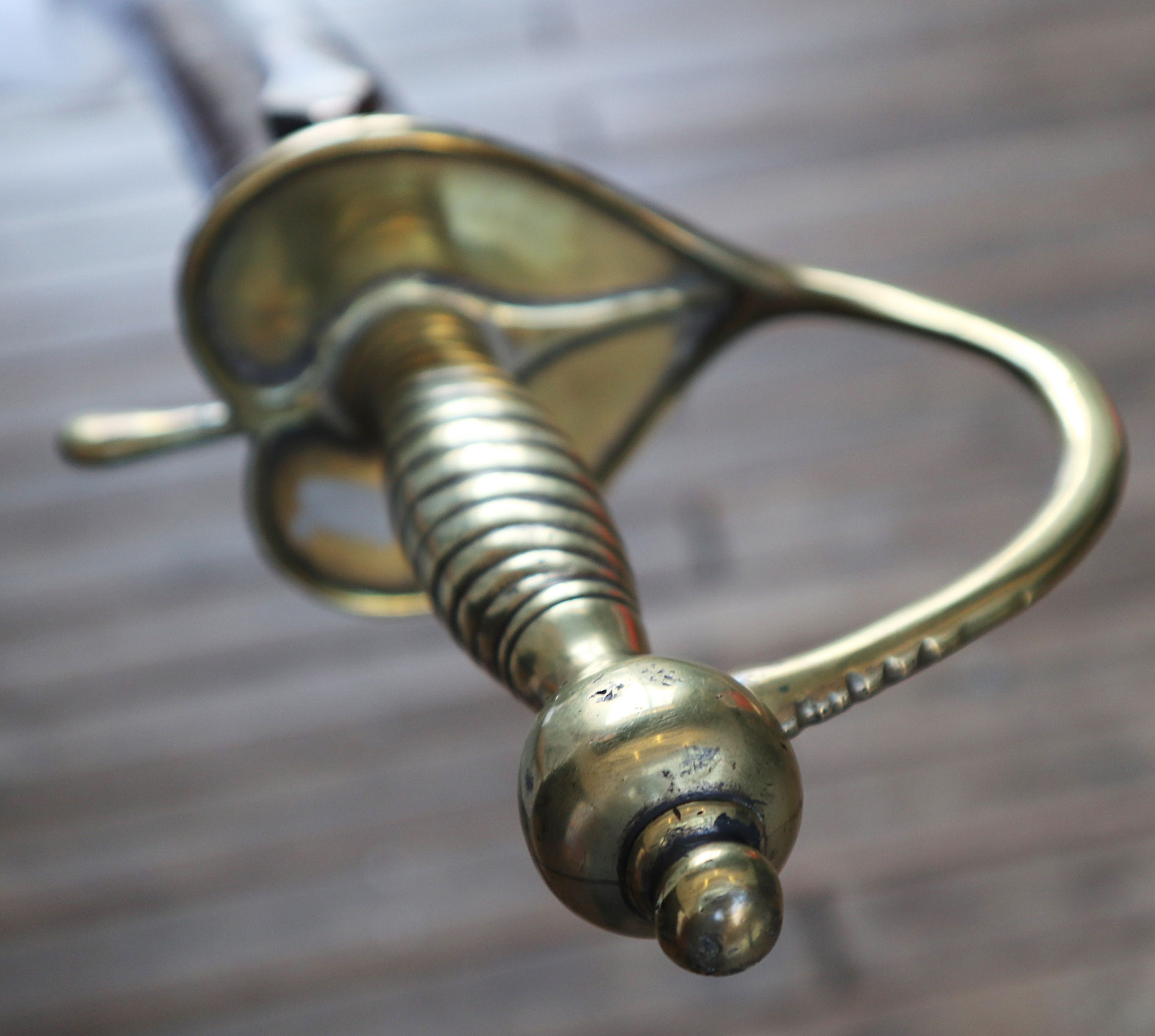 Unbekannter Infanteriesäbel mit Stichblatt. Wären die Stempel in einer anderen Reihenfolge, hätte die Markierung für das Vaterländische Museum stehen können.