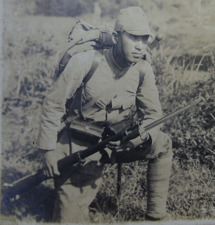 Japanische Soldaten mit T30 Bajonett, Variante A im Russisch-Japanischen Krieg 1904-05,