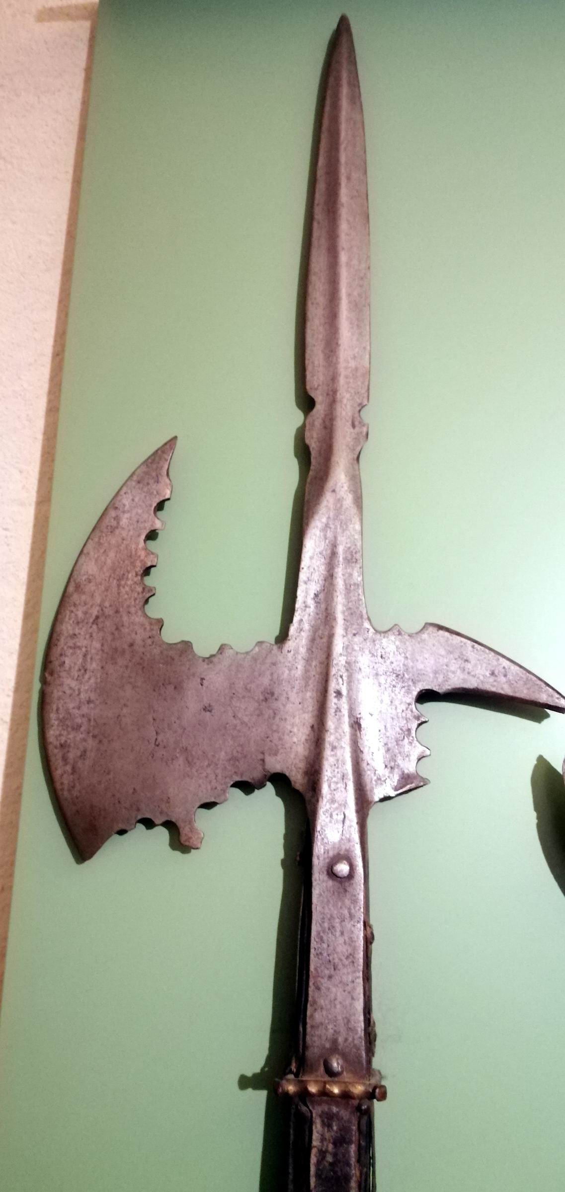 3. Partisanen-Helmbarte, Deutsch, Ende 17. Jahrhundert, mit Inschrift "HONI SOIT QUI MAL Y PENSE" Motto des