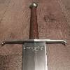Die Klinge mit abgeflachtem Diamantquerschnitt hat eine breite Basis, eine sich stark verjüngende Spitze und ist handgeschmiedet. Es ist das zurzeit in der Anschaffung teuerste Schwert in meiner Sammlung, mit der breitesten und bei seiner Auslieferung wohl schärfsten Klinge.