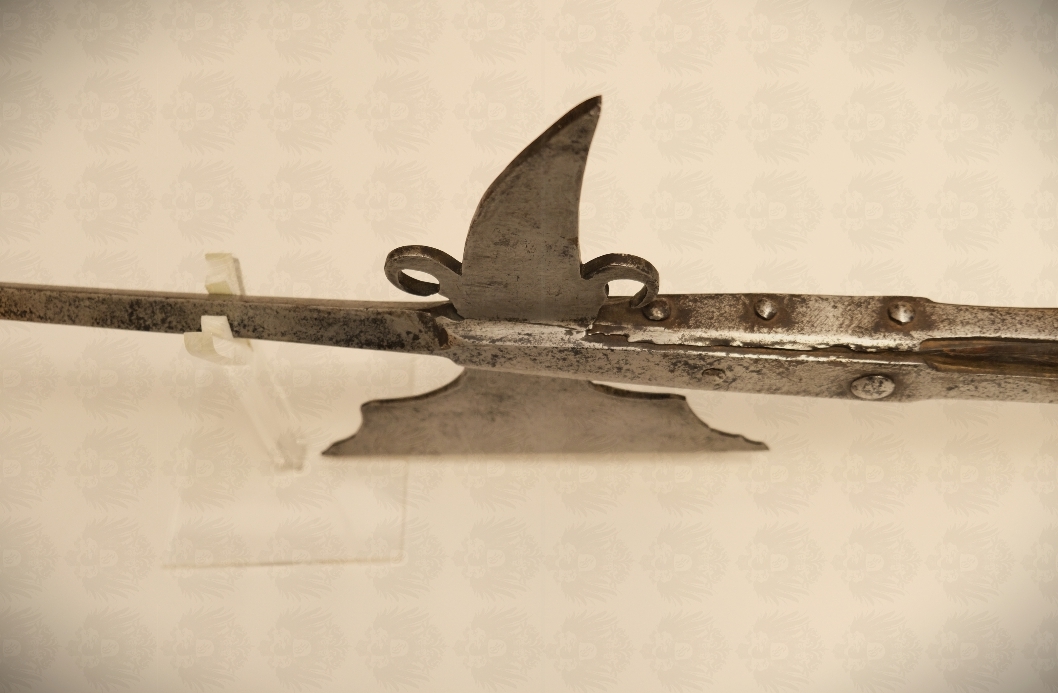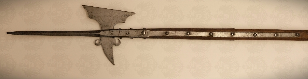 Ab 1550 erfährt die Hellebarde eine deutliche Formwandlung. Hierbei tritt die Funktion des Beiles zurück und der Spieß wird länger. Bei diesem Stück ist das Beil bereits verkleinert, die Schneide aber noch gerade. Später wird sie halbmondförmig.