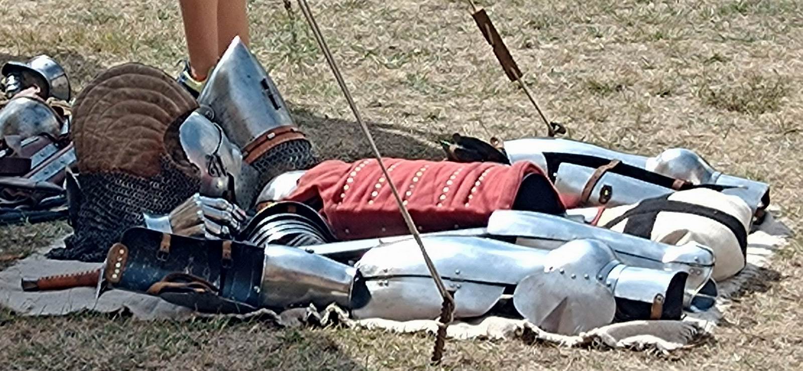 Erläuterung des schonenden Aufsteigens eines voll gepanzerten Ritters auf das Pferd.