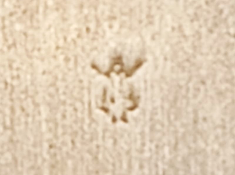 Nachdem ich Fulvio Fotos vom Schwert und den Marken zukommen ließ, hat er das Schwert als sein Produkt erkannt, die Marke aber nicht als seine. Ich sendete ihm nach Aufforderung bessere Fotos und gab die Maße der Marke an (ca. 5x5 mm). Mein Vergleichsbild, hier anhängend, konnte ihn dann doch vom Gegenteil überzeugen, die fehlende Umrandung der Marke ist ihm aber schleierhaft.